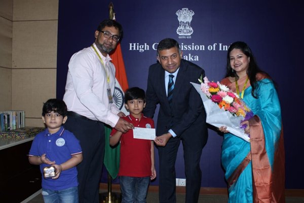 এতে আরও বলা হয়, ছয় বছর বয়সী শিশু আনজারকে তার সুন্দর শিল্পকর্মের জন্য বিশেষ পুরস্কার হিসেবে ১ হাজার ডলারের চেক প্রদান করা হয়। এ উপলক্ষে ঢাকার ভারতীয় হাইকমিশনে আয়োজিত একটি অনুষ্ঠানে হাইকমিশনার শ্রী বিক্রম কুমার দোরাইস্বামী চেকটি মাস্টার আলীর হাতে তুলে দেন। এসময় বিজয়ীকে তার পরিবার ও হাইকমিশনের কর্মকর্তাদের উপস্থিতিতে অভিনন্দন জানানো হয়।