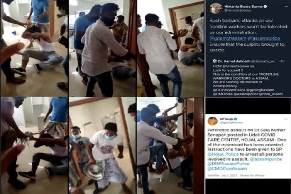 লংকা (অসম): কোভিডে আক্রান্ত জনৈক রোগীর মৃত্যুকে কেন্দ্র করে লংকার উদালি হাসপাতালে তুলকালাম কাণ্ড এবং কর্তব্যরত ডাক্তারকে গণহারে পিটুনির সঙ্গে জড়িত এক দুষ্কৃতিকারীকে গ্রেফতার করা হয়েছে বলে জানিয়েছেন অতিরিক্ত ডিজিপি (আইন-শৃঙ্খলা তথা স্পেশাল ডিজিপি আইপিএস জিপি সিং। টুইট করে এই খবর জানিয়ে জিপি সিং আরও জানান, ঘটনার সঙ্গে জড়িত সকলকে অনতিবিলম্বে গ্রেফতার করতে হোজাইয়ের পুলিশ সুপারকে নির্দেশ দেওয়া হয়েছে। এদিকে গৃহ দফতরের দায়িত্বপ্রাপ্ত মুখ্যমন্ত্রী হিমন্তবিশ্ব শর্মা নৃশংস ঘটনার তীব্র নিন্দা করে তাঁর অফিশিয়াল টুইটার হ্যান্ডলে কালো রঙের ওপর রিভার্সে সাদা রং দিয়ে লিখেছেন, প্রথমসারির যোদ্ধাদের ওপর বর্বরোচিত হামলা কোনও অবস্থায় সহ্য করা যায় না। অপরাধীদের পাকড়াও করে যথোপযুক্ত শাস্তি দিয়ে নিগৃহীতকে ন্যায় পাইয়ে দেওয়ার অঙ্গীকার করেছেন মুখ্যমন্ত্রী ড. শর্মা।