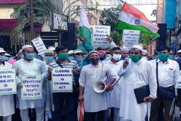 আসামে সরকারী মাদ্রাসা বন্ধের সিদ্ধান্তের প্রতিবাদে অল বেঙ্গল সংখ্যালঘু যুব ফেডারেশন পশ্চিমবঙ্গের রাজধানী কলকাতায় আসাম ভবনটি ঘেরাও করে সংশ্লিষ্ট কর্মকর্তাদের কাছে একটি স্মারকলিপি দিয়েছে। মঙ্গলবার সংগঠনের সদস্য ও সমর্থকরা অনুষ্ঠানে বিভিন্ন দাবি নিয়ে প্ল্যাকার্ড প্রদর্শন করেছিলেন। সম্প্রতি, আসামের শিক্ষামন্ত্রী এবং বিজেপি নেতা হিমন্ত বিশ্ব শর্মা বলেছেন, রাজ্যের ৬১০ মাদ্রাসা বন্ধ করে সাধারণ বিদ্যালয়ে রূপান্তর করা হবে। তিনি আরও বলেছিলেন যে মাদ্রাসা বোর্ড বন্ধ হয়ে যাবে। তিনি বলেন, এ বিষয়ে প্রয়োজনীয় প্রজ্ঞাপন আগামী নভেম্বর মাসে জারি করা হবে। অসম সরকারের সিদ্ধান্তের প্রতিবাদে মঙ্গলবার বিকেলে কলকাতার আসাম ভবনের সামনে অল বেঙ্গল সংখ্যালঘু যুব ফেডারেশনের সাধারণ সম্পাদক মুহাম্মদ কামরুজ্জামানের নেতৃত্বে একটি বিক্ষোভ সমাবেশ করা হয়।