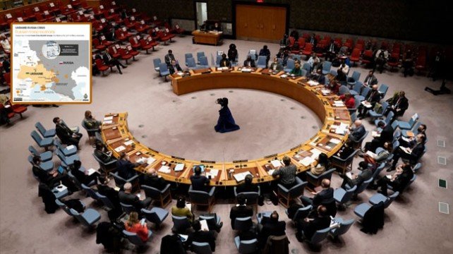 ইউক্রেন ইস্যুতে জাতিসঙ্ঘের নিরাপত্তা পরিষদ জরুরী বৈঠক ডেকেছে। দেশটির পূর্বাঞ্চলের বিদ্রোহী নিয়ন্ত্রিত দুটি রুশপন্থী অঞ্চলকে স্বাধীন রাষ্ট্রের স্বীকৃতি দিয়েছে মস্কো। এর কয়েক ঘণ্টা পরই ওই দুই অঞ্চলে রাশিয়ার সেনা মোতায়েনের নির্দেশ দিয়েছেন রুশ প্রেসিডেন্ট ভ্লাদিমির পুতিন। তিনি বলেছেন, ওই এলাকায় শান্তি বজায় রাখতে সেনা মোতায়েন করা হবে।
