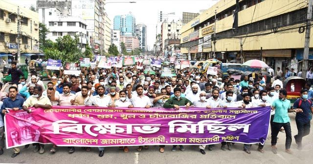 নোয়াখালীর বেগমগঞ্জ সহ সারাদেশে আওয়ামীলীগ ও ছাত্রলীগের সন্ত্রাসীদের ধর্ষণ, গুম, খুন ও চাঁদাবাজির প্রতিবাদে আজ ৬ অক্টোবর মঙ্গলবার সকালে রাজধানীর মতিঝিলে বিক্ষোভ মিছিল ও সমাবেশ করে বাংলাদেশ জামায়াতে ইসলামী ঢাকা মহানগরী দক্ষিণ।