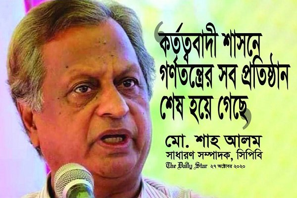শাহ আলম: বর্তমান সরকার যা করছে তা হলো, কর্তৃত্ববাদী শাসন। গণতন্ত্রের সব প্রতিষ্ঠান শেষ হয়ে গেছে। সেটা বিচার বিভাগের কথা বলেন, স্থানীয় সরকারের ক্ষমতায়নের কথা বলেন বা সংসদও যেটা চলছে তা দলীয় সংসদের মতো হয়ে গেছে। সংসদ সদস্যরা দলের বাইরে কিছু বলতে পারেন না। অন্য দল না থাকলেও দলের ভেতরেও যদি কথা বলার স্বাধীনতা থাকে তাহলেও তো হয়। সেটাও বন্ধ।