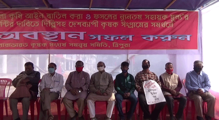 রাজ্যের রাজধানীর ওরিয়েন্ট এলাকায় এই গণঅবস্থানের আয়োজন করে বামফ্রন্ট সমর্থিত সারা ভারত কৃষক সমন্বয় সমিতি।