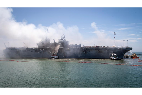 রবিবার সকালে ডিয়েগো শিপইয়ার্ডে রাখা রণতরিতে বিস্ফোরণের জেরে আগুন ধরে যায় মার্কিন এই যুদ্ধজাহাজে। সেই থেকে আগুন জ্বলছে। রবি, সোম, মঙ্গল তিনটা দিন কাটলেও আগুন সম্পূর্ণ নেভানো সম্ভব হয়নি।