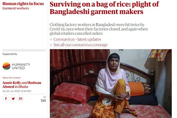 বাংলাদেশের পোশাক শ্রমিকদের নিয়ে লন্ডনের প্রভাবশালী দ্য গার্ডিয়ানে প্রকাশিত এক প্রতিবেদনে এসব কথা বলা হয়েছে।