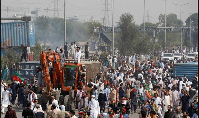 নতুন নির্বাচনের দাবি নিয়ে রাজধানী ইসলামাবাদ অভিমুখে যাত্রা করা পাকিস্তানের সাবেক প্রধানমন্ত্রী ইমরান খানের সমর্থকদের টিয়ার গ্যাসের শেল ছুড়ে এবং লাঠিপেটা করে ছত্রভঙ্গ করে দিয়েছে পুলিশ। কয়েকশ সমর্থককে আটকও করা হয়েছে।