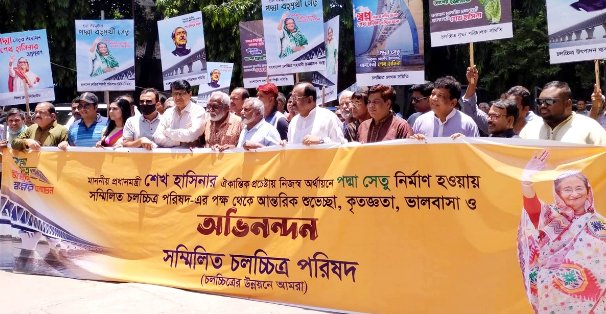 সোমবার (২৭ জুন) এফডিসিতে একত্র হন সিনেমা সংশ্লিষ্ট বিভিন্ন সংগঠনের নেতা-সদস্যরা। তারা সম্মিলিতভাবে পদ্মা সেতুর জন্য প্রধানমন্ত্রী শেখ হাসিনাকে ধন্যবাদ ও অভিনন্দন জানিয়েছেন।