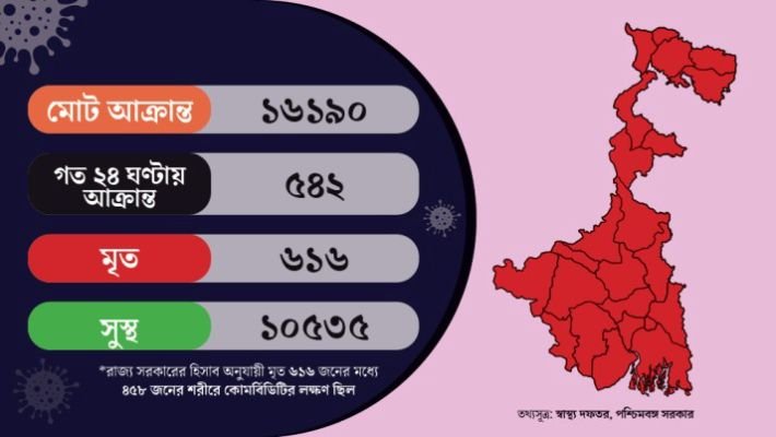 পশ্চিমবঙ্গে রেকর্ড সংখ্যক আক্রান্ত, এক দিনে ৫৪২, মারা গেলেন ১০ জন