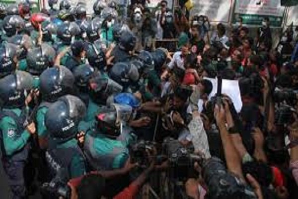 সরজমিনে দেখা যায়, মিছিলটি শাহবাগের ইন্টারকন্টিনেন্টাল এলাকায় পৌঁছলেই বাঁধা দেয় পুলিশ। এমনকি তাদের ওপর লাঠিচার্জ করতেও দেখা যায়। পরে পুলিশের সঙ্গে ছাত্র ইউনিয়নের কর্মীদের ধস্তাধস্তি শুরু হয়।