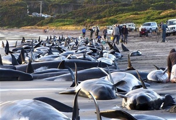 সোমবার স্থানীয় অধিবাসীরা তিমির ওই বিশাল দলটিকে উপকূলে আবিষ্কার করেন। তিমিগুলো উপকূলে আটকা পড়েছিল। ফলে পানির অভাবে ছটফট করতে করতেই অনেক তিমির মৃত্যু হয়েছে।