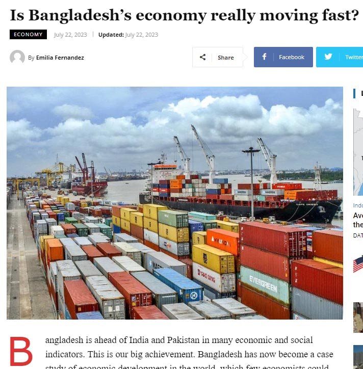 নিবন্ধে এমিলিয়া ফার্নান্দেজ লিখেছেন, অনেক অর্থনৈতিক ও সামাজিক সূচকে বাংলাদেশ ভারত ও পাকিস্তানের চেয়ে এগিয়ে রয়েছে। বাংলাদেশ এখন বিশ্বের অর্থনৈতিক উন্নয়নের কেস স্টাডিতে পরিণত হয়েছে, যা খুব কম অর্থনীতিবিদই ভবিষ্যদ্বাণী করতে পেরেছিলেন।