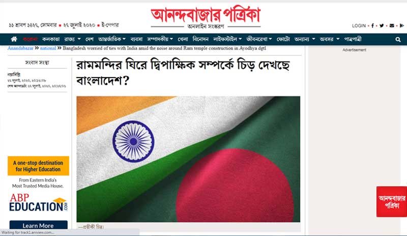 আনন্দবাজার, নিউজ১৮ ও দ্য হিন্দুর প্রকাশিত খবরে বলা হয়েছে, রাম মন্দির নির্মাণের উদ্যোগের বিষয়ে ক্ষোভ প্রকাশ করে বাংলাদেশের পররাষ্ট্রমন্ত্রী বলেছেন, ভারতের এমন কোনো পদক্ষেপ নেয়া উচিত নয়, যা প্রতিবেশী রাষ্ট্রের সঙ্গে ঐতিহাসিক সম্পর্কে আঘাত করতে পারে।