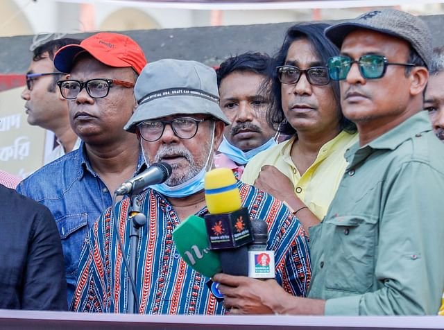 সেই প্রতিযোগিতাকে ধ্বংস করতে হবে। সাম্প্রদায়িক সম্প্রীতি নষ্টের যে বিধ্বংসী কার্যক্রম চলছে, এগুলোকে ধ্বংস করতে হবে। আর এ জন্য অনতিবিলম্বে আমরা সমাবেশের ডাক দেব। আমাদের অন্য যেসব সংগঠন আছে, তাদের লাগাতার কর্মসূচিতে অংশ নেওয়ার আহ্বান জানাব। প্রতিটি সংগঠন যেন আলাদা আলাদাভাবে কর্মসূচি ঘোষণা করে। মহাসমাবেশ ডাকব, সেটি খুব পরিকল্পিতভাবে, যাতে সারা দেশের শিল্পী–কলাকুশলীর পাশাপাশি সমাজের সর্বস্তরের মানুষ অংশ নিতে পারে।’