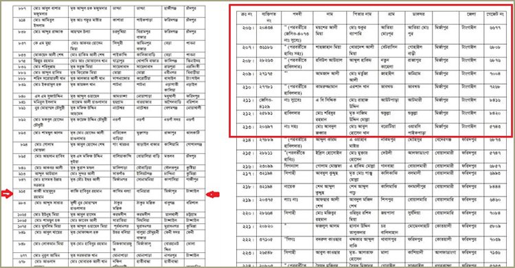 এর মধ্যে টাঙ্গাইলের মির্জাপুর উপজেলার ৯ জনের নাম রযেছে। ১৯৭১ সালের ১৬ ডিসেম্বরের পর তৎকালীন বিডিআর বর্তমানে বর্ডার গার্ড বাংলাদেশ’এ (বিজিবি) যোগদানকৃতরা হলেন, উপজেলার আনাইতারা ইউনিয়নের আতিয়া মামুদপুর গ্রামের শুকুর ব্যাপারীর ছেলে ময়শের আলী (জেসিও-৪০৭৩ না: সুবে:, গেজেট নম্বর ৬৬৭৭), বহুরিয়া ইউনিয়নের বেত্রাসিন গ্রামের খোরশেদ আলী মিয়ার ছেলে শাজাহান মিয়া (হাবি:সহ: গেজেট নম্বর ৬৮০৮), উয়ার্শী ইউনিয়নের নতুন কহেলা গ্রামের আব্দুল হাকিমের ছেলে রবিউল আওয়াল (হাবিলদার, গেজেট নম্বর ৬৮৭৬), বরোটিয়া গ্রামের আবুল হোসেন খানের ছেলে আবদুল জব্বার (না:সহ:, গেজেট নম্বর ৫৭৪৩), আউটপাড়া গ্রামের রাহাজ উদ্দিনের ছেলে এ বি সিদ্দিক (না:সুবে:, গেজেট নম্বর ৮৪১৬), ভাতগ্রামের মর্তুজা আলীর ছেলে আমজাদ আলী (হাবিলদার, গেজেট নম্বর ৭০০৪), বানাইল ইউনিয়নের ভাবখণ্ড গ্রামের এরশাদ খানের ছেলে কামরুজ্জামান (হাবিলদার, গেজেট নম্বর ৭২৬৮), ফতেপুর ইউনিয়নের শুভুল্যা গ্রামের নাজিম উদ্দিন মোল্লার ছেলে শহিদুর রহমান (হাবিলদার, গেজেট নম্বর ৮৪২০) এবং বিমান বাহিনীতে যোগদানকৃত উপজেলার জামুর্কী ইউনিয়নের কদিম ধল্যা গ্রামের কাজি হাবিবুর রহমানের ছেলে কাজি মাহমুদুর রহমান (গেজেট নম্বর ৯১৫)।