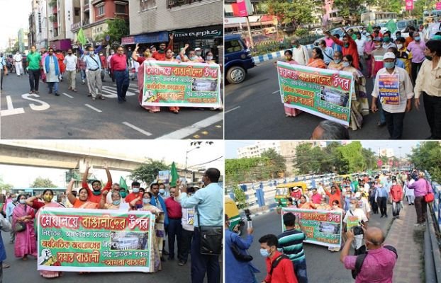 বিশু / সমীপ, কলকাতা: মেঘালয়ে বাঙালি নির্যাতন শীঘ্রই বন্ধ করতে এবং ‘সন্ত্রাসী’ কার্যকলাপে লিপ্ত খাসি ছাত্র ইউনিয়ন (কেএসইউ)-কে নিষিদ্ধ ঘোষণা করার দাবিতে কলকাতায় বিক্ষোভ মিছিল করে মেঘালয়ের রাজ্যপাল ও মুখ্যমন্ত্রীর উদ্দেশ্যে স্মারকপত্র পাঠিয়েছে ‘আমরা বাঙ্গালী’, ‘শিবসেনা’, ‘বাংলা ভাষা একতা মঞ্চ’, ‘সারা বাংলা ছাত্র যুব সংস্থা’, ‘রিপাবলিক পার্টি অব ইন্ডিয়া’, ‘বঙ্গভাষী’, ‘দলিত ও সংখ্যালঘু উন্নয়ন পরিষদ’ প্রভৃতি সংগঠন।