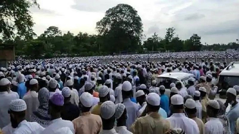 সূত্রে খবর, মৃত ধর্মগুরুর পরিবার চেয়েছিল ৩ জুলাই শোকমিছিল ও শেষকৃত্য হোক। পরে পরিকল্পনা বদলে ২ তারিখই শেষকৃত্য হয়। ধর্মগুরুর শেষযাত্রায় কাতারে কাতারে লোক জড়ো হন। তার মধ্যে অনেকের মুখে না ছিল মাস্ক, না মানা হচ্ছিল দূরত্ববিধি। সরকারি হিসেবেই শেষকৃত্যে ১০ হাজার মানুষ ছিলেন। বেসরকারি হিসেবে সংখ্যাটা আরও বেশি। ভিড়ের বিষয়টি প্রথমে নওগাঁর বাইরে বেরোয়নি। কিন্তু ধর্মগুরুর ছেলে, বিধায়ক আমিনুল ইসলামের সোশ্যাল মিডিয়া পোস্টের সৌজন্যে বিষয়টি সামনে আসে। বাবার শেষযাত্রায় বিশাল ভিড়ের ছবি নিজের সোশ্যাল মিডিয়া অ্যাকাউন্টে পোস্ট করেন তিনি। এরপরেই নড়েচড়ে বসে জেলা প্রশাসন।