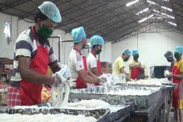 রাজধানী আগরতলা পার্শ্ববর্তী নাগিছড়ার আশ্রমপাড়ার সেমাই এবং পাপড় তৈরির কারখানায় গিয়ে দেখা গেল পুরুষ ও মহিলা শ্রমিকরা কাজে ব্যস্ত। কেউ মেশিনে সেমাই তৈরি করছেন, আবার কেউবা তৈরি সেমাই শুকানোর জন্য স্তরে স্তরে সাজিয়ে রাখছেন। আবার কেউ সম্পূর্ণভাবে তৈরি করার সেমাই প্যাকেট করছেন।