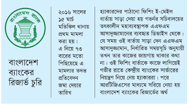 কেন্দ্রীয় ব্যাংকের এক কর্মকর্তার কক্ষে কথা হয় তার সঙ্গে। রিজার্ভ চুরির আগে কেন্দ্রীয় ব্যাংকে বহিরাগতদের অতিরিক্ত যাতায়াত নিয়েও ক্ষোভ প্রকাশ করেন সাবেক এ ডেপুটি গভর্নর। তবে তিনি এও মনে করেন কেন্দ্রীয় ব্যাংকের কারো দ্বারা রিজার্ভ চুরির মতো অপরাধ সম্ভব নয়। বরং প্রযুক্তির ব্যবহারে পিছিয়ে থেকেও আরটিজিএস প্রকল্পে যুক্ত হতে যাওয়াটাকেই এ চুরির পেছনে বেশি দায়ী বলে মনে করেন তিনি।