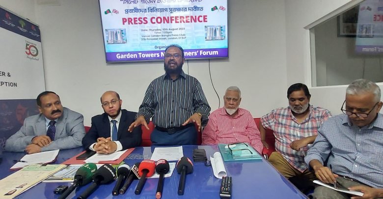 ১০ আগস্ট বৃহস্পতিবার লন্ডন বাংলা প্রেসক্লাবে আয়োজিত এক সংবাদ সম্মেলনে তাঁরা এসব অভিযোগ করেন।‘গার্ডেন টাওয়ার এনআরবি ওনার্স ফোরাম’ ওই সংবাদ সম্মেলনের আয়োজন করে। এতে কয়েক ডজন প্রবাসী ফ্ল্যাট মালিক উপস্থিত ছিলেন।
