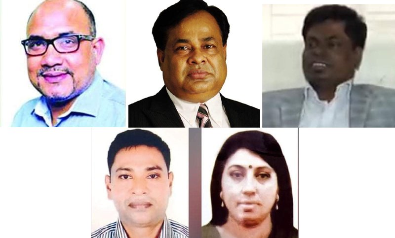 ওপরে বামে মোতাজ্জেরুল ইসলাম মিঠু, এরপর ডানে আব্দুর রাজ্জাক এবং জাহের উদ্দিন, নিচে আবজাল হোসেন ও তাঁর স্ত্রী রুবিনা আক্তার