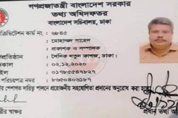 ওই কার্ডে দেয়ার তথ্য অনুযায়ী, দৈনিক নতুন কাগজ নামের একটি পত্রিকার প্রকাশক ও সম্পাদক পরিচয় দিয়ে ২০১৯ সালে ৩ ডিসেম্বর অ্যাক্রিডিটেশন কার্ডটি নেয় শাহেদ। ওই কার্ডের মেয়ারকাল দেয়া হয় ২০২০ সালের ২ ডিসেম্বর। এটি সম্পূর্ণ অস্থায়ী একটি অ্যাক্রিডিটেশন কার্ড যার নাম্বার-৬৮৪৫।