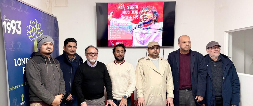 মঙ্গলবার (১৩ জানুয়ারি), বাদ মাগরিব, লন্ডন বাংলা প্রেস ক্লাব মিলনায়তনে উক্ত প্রতিবাদ সভা অনুষ্ঠিত হয়। ইনকিলাব মঞ্চের মুখপাত্র ও জুলাই বিপ্লবের অন্যতম নেতা শহিদ শরীফ ওসমান হাদির খুনিদের গ্রেপ্তার ও দ্রুত বিচারের দাবিতে ‘শহীদ ওসমান হাদির জন্য ইনসাফ চাই’ শিরোনামে উক্ত প্রতিবাদ সভার আয়োজন করে যুক্তরাজ্যভিত্তিক অরাজনৈতিক সামাজিক সংগঠন “ইনসাফ”।